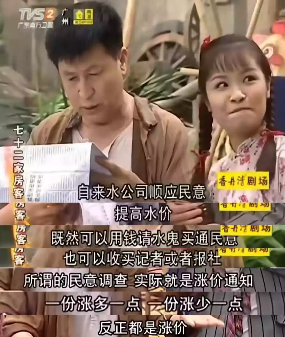 比如情景剧《七十二家房客》就尖锐地指出,自来水涨价听证会,看似“顺应民意”,实则道貌岸然。